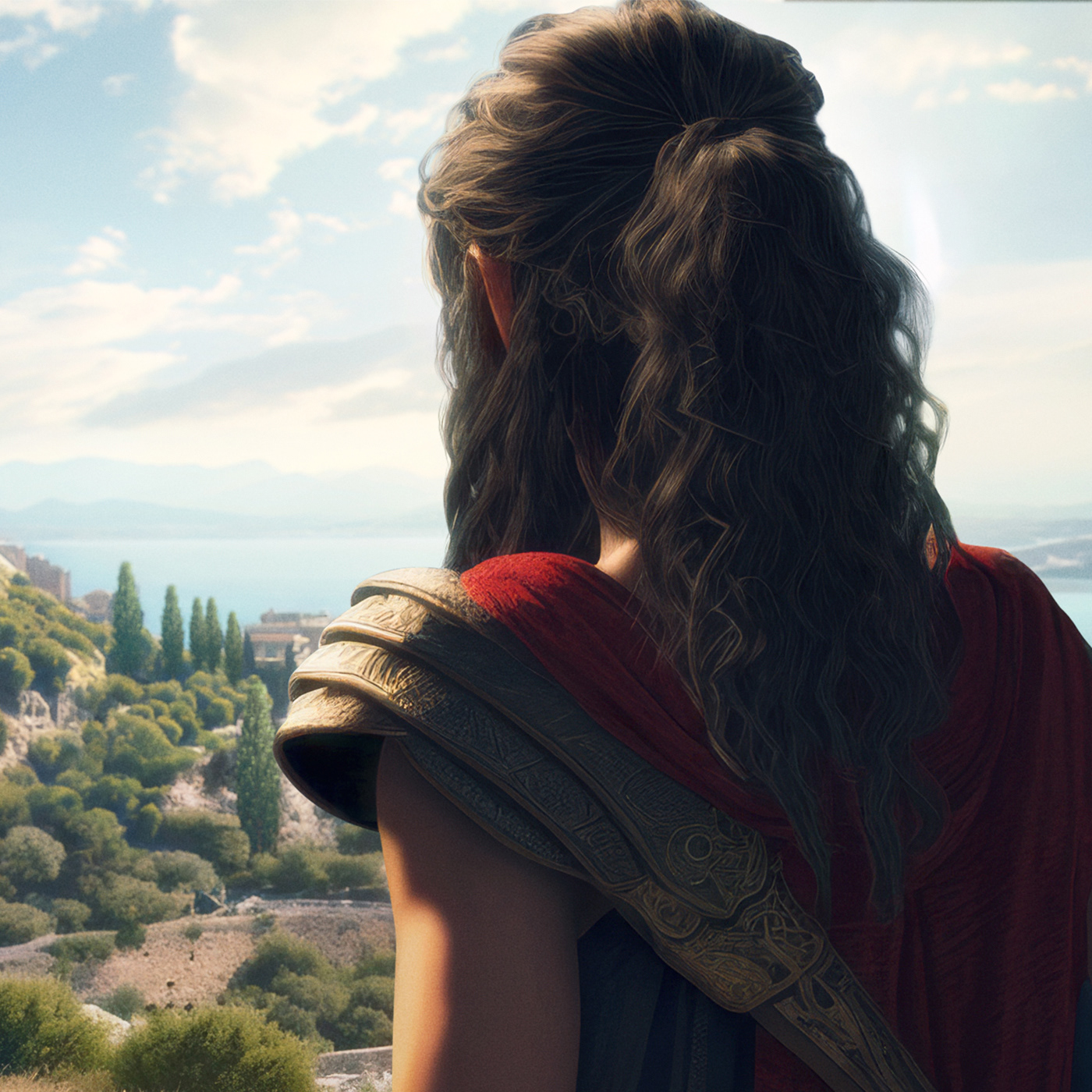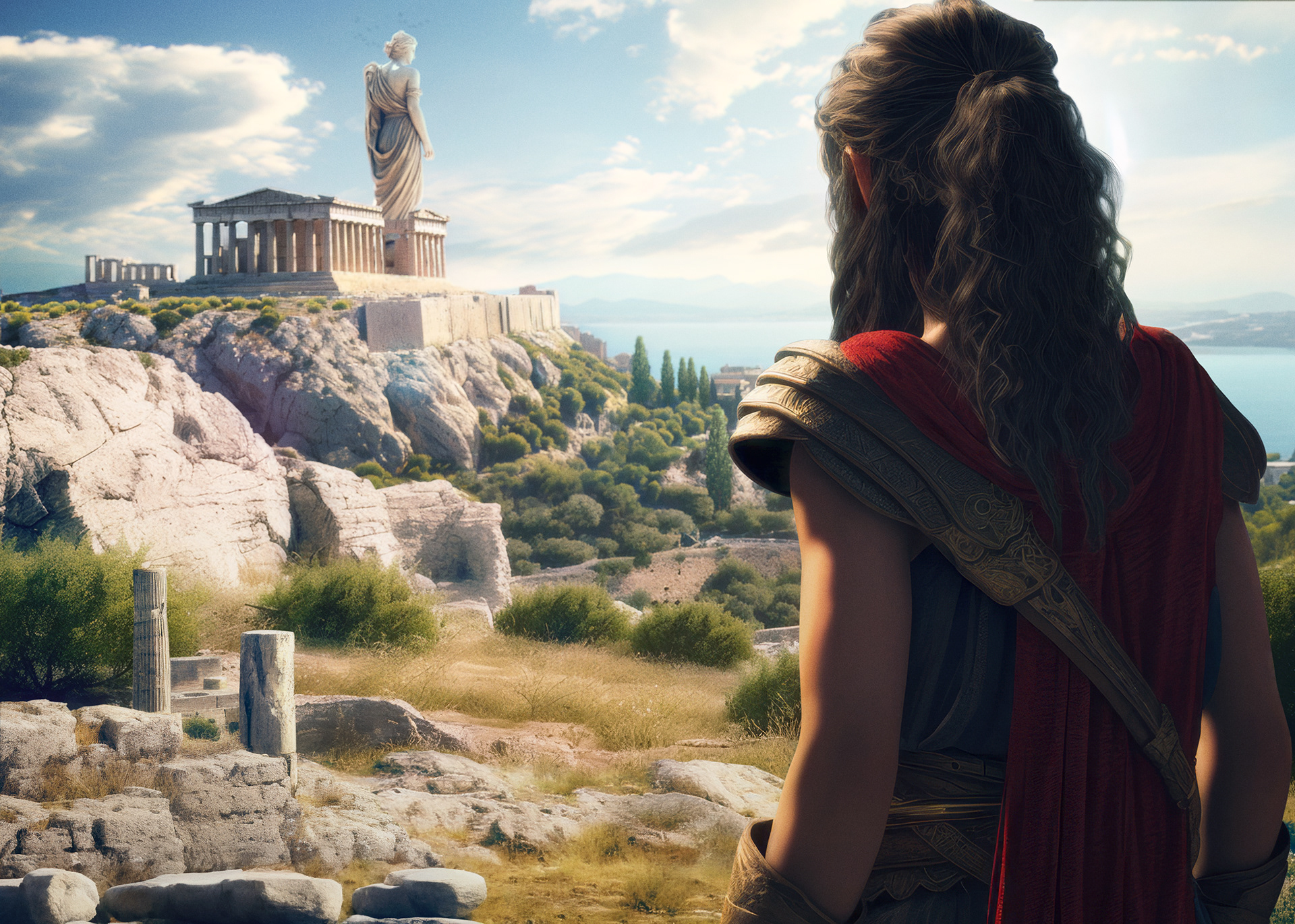 Project inspired by the game Assassin's Creed Odyssey, using AI and Photoshop.